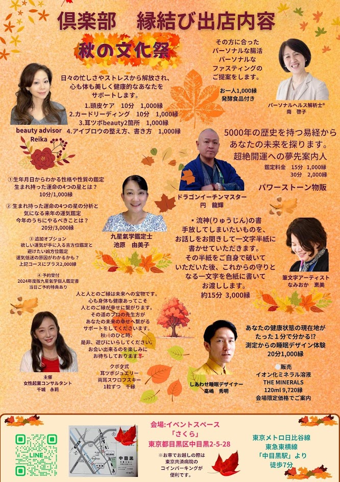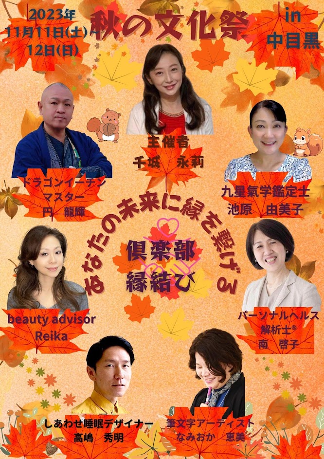 2023年11月11日㈯~12日(日) 東京都目黒区中目黒のイベントスペース「さくら」にて『秋の文化祭』を開催致します👏